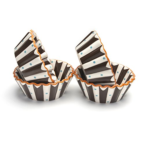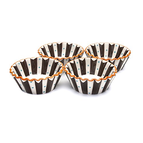 These playful salad/dessert bowls are perky, fun and great for everyday use! Each ceramic bowl is carved by hand, delicately hand painted and fired under high temperature. Use these unique bowls for salad, or plop in a scoop of ice cream to use them as dessert bowls. Whether on display or adorning your table, the versatility of the Blue Brulee salad/dessert bowls will add ambience to your decor.Feature