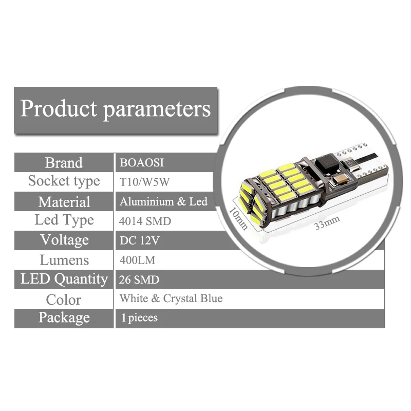 Feature 2:Canbus led, error free led canbus, t10 w5w 168 194