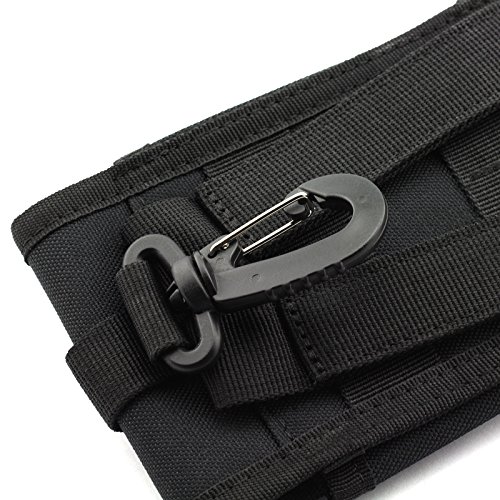 -. Feature : 600D waterproof fabric, high quality buckles, switchable hook, more practical, convenient and durable. / Bartack types strengthening for the stress of bag makes the pouch be more fastness. Double hasps designed fastening ribbon and buckle can be worn with different modes. / Anti-scrape, wear resistance, tearing resistance, handiness, can be hung on the waist directly or combined use with backpack or tactical pouch, which is convenient to hang and carry. / Size is 17*9*2cm, which can hold large size cell phone and all kinds of accessories, such as: iPhone 6/7/6s/7s, Samsung s5/s6 etc. / Suitable for running, outdoor, gym, climbing, backpack expansion, tactical bag expansion and so on.