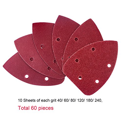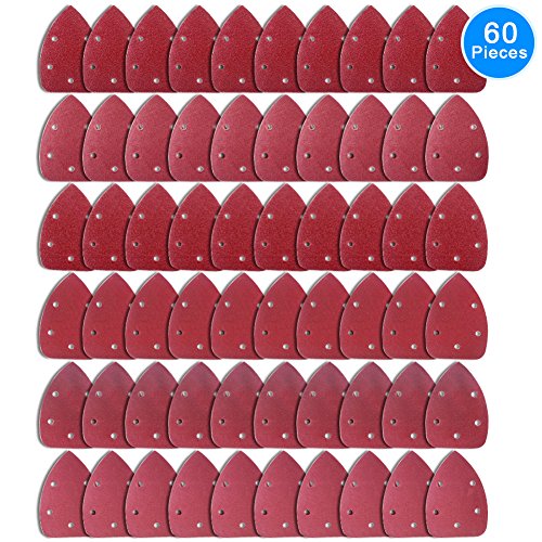AUSTOR 60 Pieces Mouse Detail Sander Sandpaper Sanding Paper Hook and Loop Assorted 40/ 60/ 80/ 120/ 180/ 240 Grits