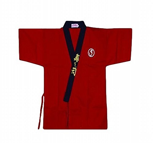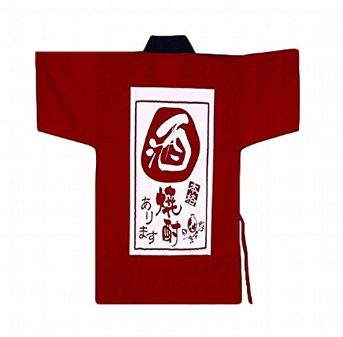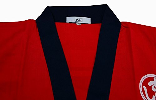 POJ Japanese Sushi Chef Coat Uniforms Sake Pattern [ M / L / XL size Navy blue / Red for unisex ] (L, Red)