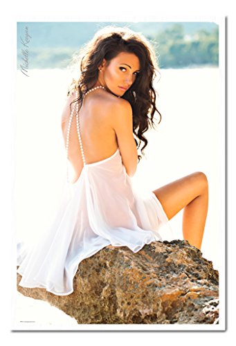 -. Title : Michelle Keegan White Dress Poster Magnetic Notice Board White Framed - 96.5 x 66 cms (Approx 38 x 26 inches)