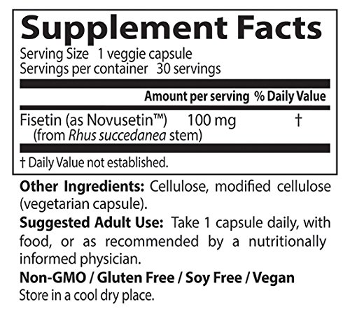 Best Fisetin featuring Novusetin offers a naturally sourced flavonol that displays many effects on brain cells and cognitive function pathways in preclinical research. Fisetin is a bioflavonoid antioxidant that can help maintain glutathione levels and mitochondrial function in the presence of oxidative stress. It has potential to cross the blood brain barrier, which may help maintain neuronal function even in the face of factors that contribute to normal age-associated decline in brain function. Other than strawberries, fisetin is scarce in fruits and vegetables compared to other flavonoids, making best fisetin featuring Novusetin a most reliable source of this powerful antioxidant and potential nootropic.Feature