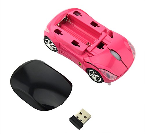 Welltop® Ferrari wireless mouse Computer Mice fashion super car shaped game mice 2.4Ghz optical mouse for pc laptop computer (Pink)