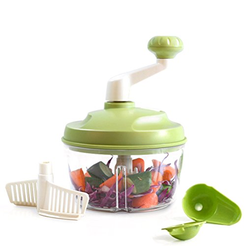 -. Feature : A perfect chopping machine without electricity, Stainless steel blades but sharp, very fast to chopping or mincing.a big handle is comfortable for your hand to pull. / Powerful handy chopper for herb/ vegetable /nuts/fruis/ boneless meats. Perfect for whipping up batches of pesto, hummus, salsa, guacamole, and more. / Great for small kitchens, RVs, travel and camping. Made from BPA free, food safe plastic. / Completely hand-powered-no batteries or electricity required! / Non-skid base sits firmly on counter as you turn knob