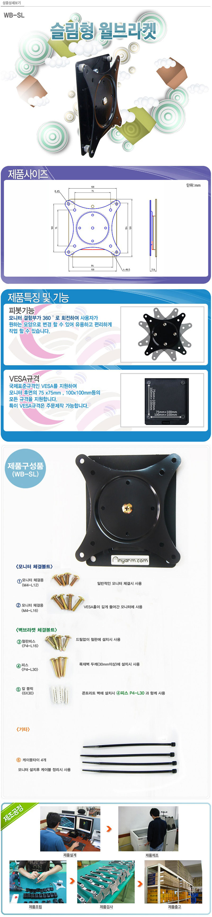 - 주요 사양벽걸이암 / 틸트 / 360도 피봇