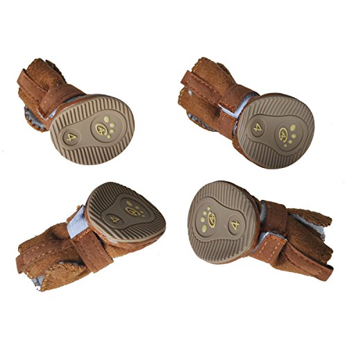 -. Title : TOOGOO(R) Brown Hook Loop Closure Booties Pet Dog Chihuahua Shoes Boots 2 Pair S