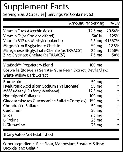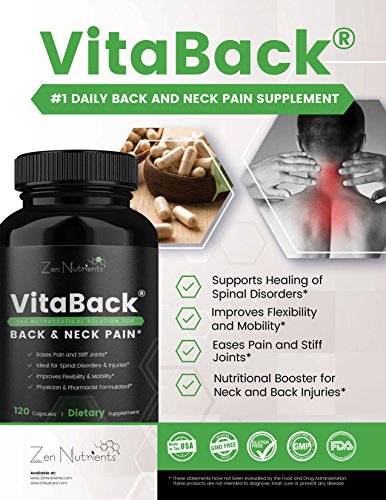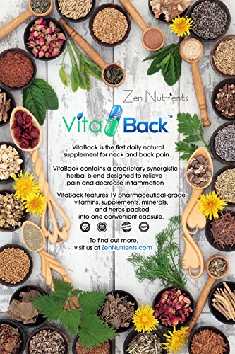 THE FIRST DAILY, NATURAL SUPPLEMENT FOR NECK, LOWER & UPPER BACK PAIN! VitaBack is the long-awaited, all-natural, high-potency nutraceutical solution to back and neck pain. These ultra-convenient, back and joint pain supplements pack in 19 different pharmaceutical-grade vitamins, minerals, herbs and supplements - all proven in clinical studies to provide effective and consistent relief.