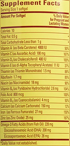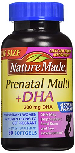 Nature Made Prenatal Multi + DHA is formulated to provide essential building blocks both mothers and babies need. The essential omega-3 fatty acid DHA is directly transferred from the mother to the fetus during pregnancy, and DHA plays a crucial role in fetal brain and eye development.†Adequate folic acid in healthful diets may reduce a motherâ€TMs risk of having a child with a brain or spinal cord birth defect. Additionally, Nature Made Prenatal Multi + DHA provides a rich source of iron, as the bodyâ€TMs need for iron increases during pregnancy to support the increase in blood volume, support cellular energy and metabolism, and support the development of a healthy baby.Feature