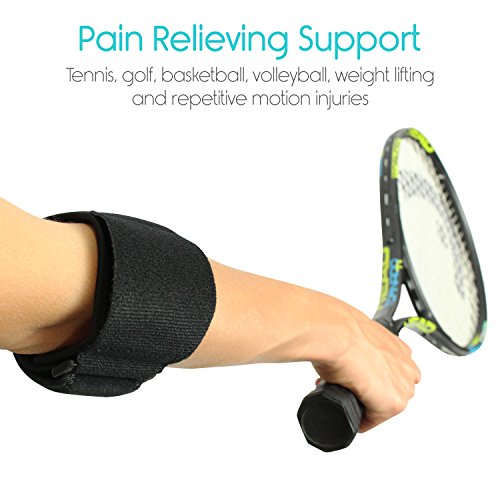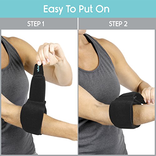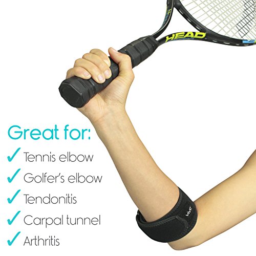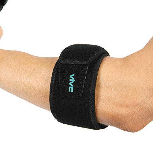 Tennis Elbow Brace by Vive Providing targeted compression, the Vive tennis elbow brace relieves painful tendonitis, tennis and golfer's elbow, carpal tunnel and arthritis, reducing swelling and inflammation with increased circulation and support. Versatile, slim design can be worn by men and women, on the left or right arm. Relieves Tennis Elbow Pain: Comfortable compression supports the forearm, relieving painful tendonitis in the elbow, muscle fatigue and tennis elbow. Relieves pain associated with carpal tunnel syndrome, golfer's elbow, and arthritis. An air compression pad provides therapeutic compression and support for the forearm reducing swelling and inflammation while comfortably allowing full range of motion. Also useful for basketball, volleyball and weightlifting, activities that often result in elbow hyperextension. Targeted Compression and Support: An air insert provides targeted compression therapy, relieving strained tendons and muscles in the forearm while increasing blood flow to reduce swelling and inflammation. The air compression pad is firm enough to provide pain-relieving support yet comfortable enough for daily use. Comfortable, Breathable, Durable: The durable bracelet style elbow brace is constructed with a lightweight, breathable neoprene keeping the arm cool and comfortable. Extra strength fasteners ensure the brace will not slip or bunch during exercise or everyday activity. Fully Adjustable Versatile Design: Versatile design can be worn on the left or right arm by men and women. The brace has a hook and loop fastener that is fully adjustable for a comfortable, customized fit for any individual. Fits arm circumferences up to 17", measuring one inch below the elbow. What's Included: 0 |