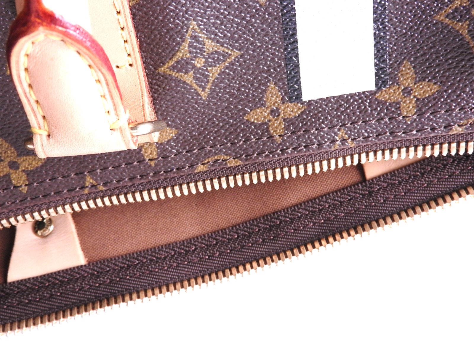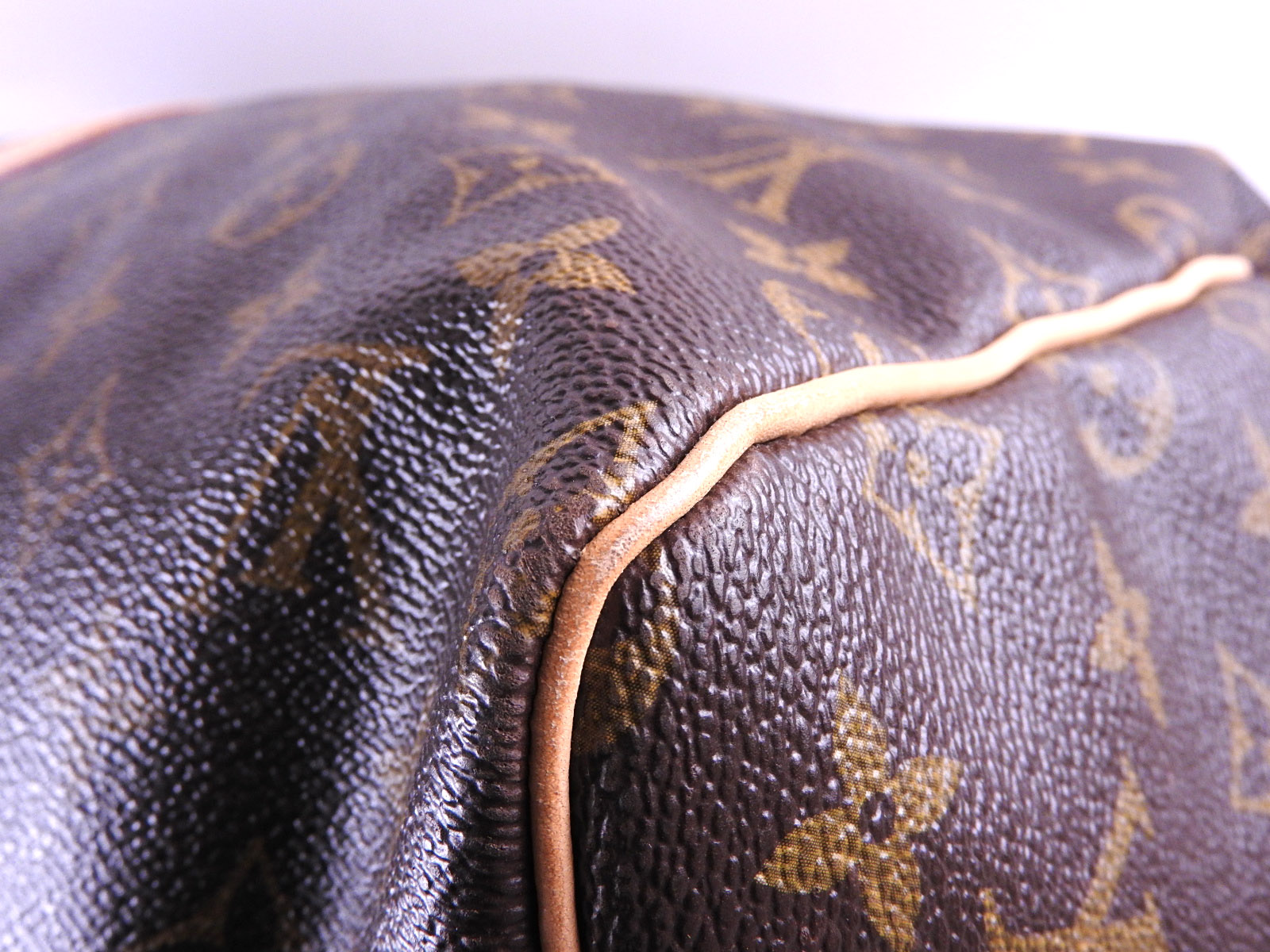 Monogram: Barely used feeling. A few slight scratches and stains. Leather: Barely used feeling. Some light stains and slight tanning. |
