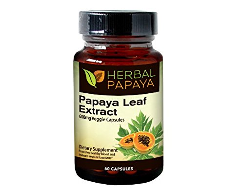 -. Feature : Papaya leaf extract capsules - 60 Veggie Capsules - from Herbal Papaya is an amazing supplement to help boost and maintain platelet - two months supply / All natural, Alcohol free Papaya Leaf Extract is manufactured a USDA inspected, GMO Free facility / High Potency Papaya Leaf Extract Capsules is made from Papaya Leaf Extraction ration of 10:1, three times stronger than Papaya Tea. / Papaya leaf extract is one of the richest sources of Antioxidants, up to 20 times more powerful than Vitamin E. / Herbal Papaya has pioneered the extraction of Papaya Leaf. Papaya leaf juice and extract has many health and wellness benefits including platelet support, immune system support and digestion support.
