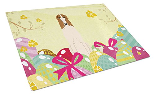 Caroline's Treasures Easter Eggs Borzoi Glass Cutting Board Large, Multicolor