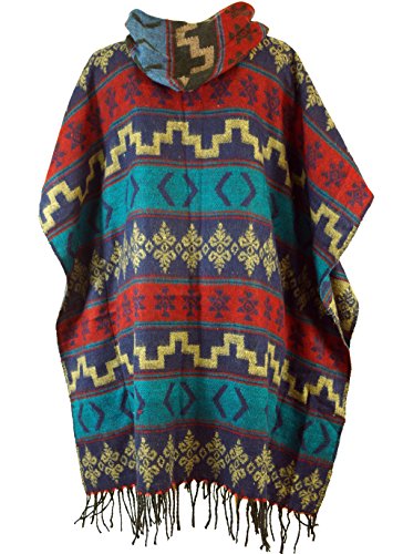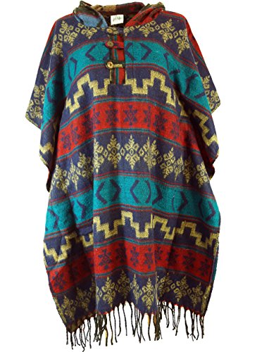 -. Feature : Bunter Goa Poncho mit Kapuze / Der unisex Poncho ist seitlich geschlossen / Toller Unisex Poncho für sie und ihn / Total im Trend unglaublich bequem / Einheitsgröße