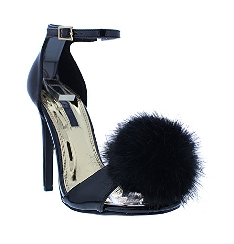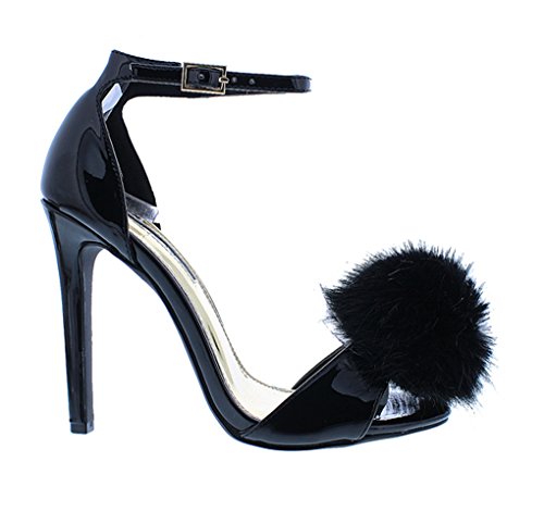 Liliana Heel Sandal w/Black PomPom Fur Ball Stiletto Heel Sandal Nikia112