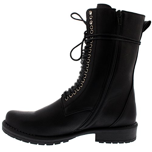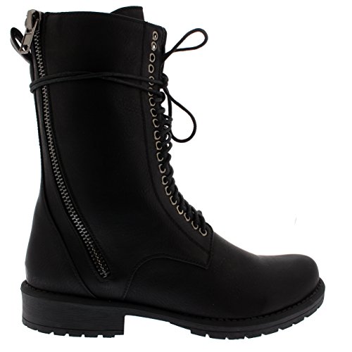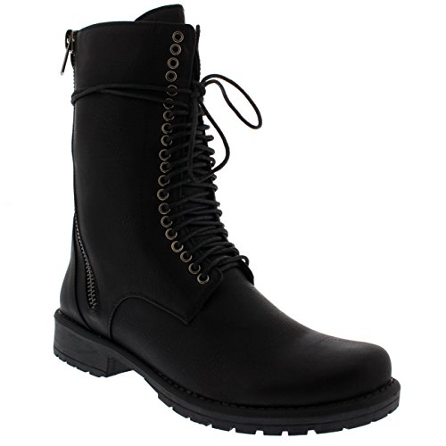 Womens Punk Lace Up Rock Army Combat Zip Military Retro Mid Calf Boots