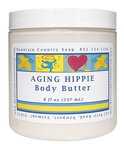 -. Feature : Get back in the groove with Aging Hippie! Made with pure patchouli essential oil - that groovy earthy scent from the 60's. / Whether your skin is dry from over exposure to the summer sun or a cold blustery winter, / You'll love the healing properties of our body butter. / A generous amount of Shea Butter & other skin loving ingredients soothes and heals.