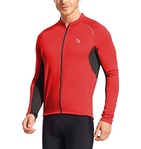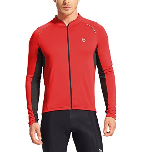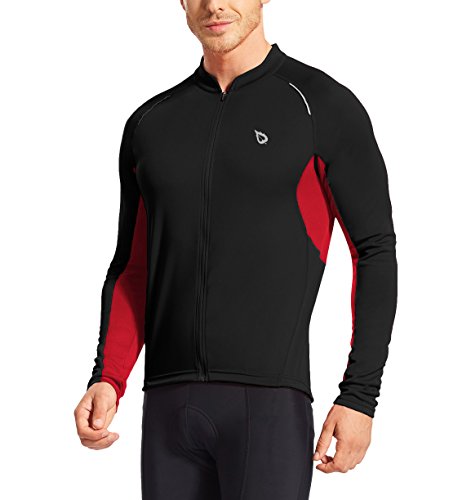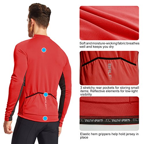 Baleaf Men's Full Zip Long Sleeve Bicycle Cycling Jersey Red Size XL