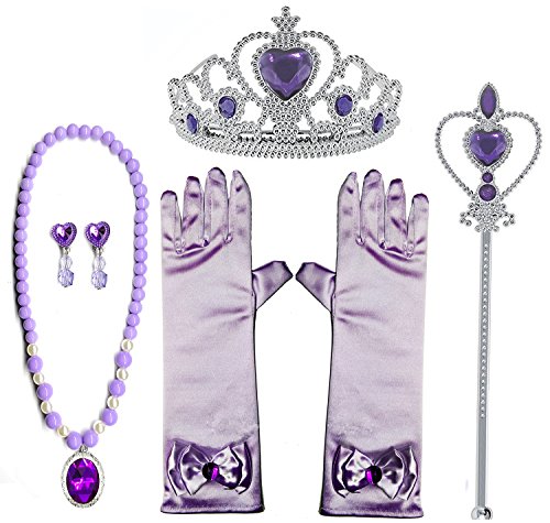 -. Feature : This is a high quality P.R.Incess cosplay set,Perfect for parties and dress up games! / Design inspiration comes from P.R.Incess sofia , full of the feeling of luxury, meanwhile glittering purple ornaments add charm like fairy tale. / The whole P.R.Incess dress up set is decorated with glitter details, paired with a purple artificial gem and silver edge. Perfect accessories for various P.R.Incess costumes like Sofia, Belle, Cinderella, Aurora and Rapunzel costumes. / Exquisite detail brings surP.R.Ise everywhere, and children who love P.R.Incess series should not miss this P.R.Incess dress up accessories set. Let your little P.R.Incess celebrate her birthday in style by wearing a P.R.Incess tiara. / Includes: a Pair(2) of Gloves, Tiara/Crown, Scepter, Necklace and a Pair of Earrings. Recommended ages for the gloves: 3-9 years old.