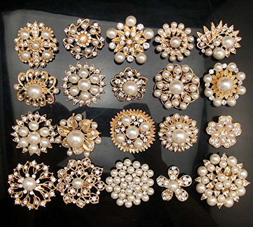 -. Title : L'vow Gold Crystal Pearl Brooches Brooch Pins Wedding Corsage Bouquet Kit Pack of 12