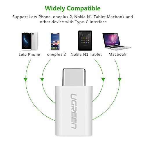 UGREEN USB-C to Micro USB Adapter, USB 2 Pack Type C Male to USB 2.0 micro Female Convert Connector Adapter,Reversible for New Macbook 12", Nokia N1,Chromebook pixel etc(White)