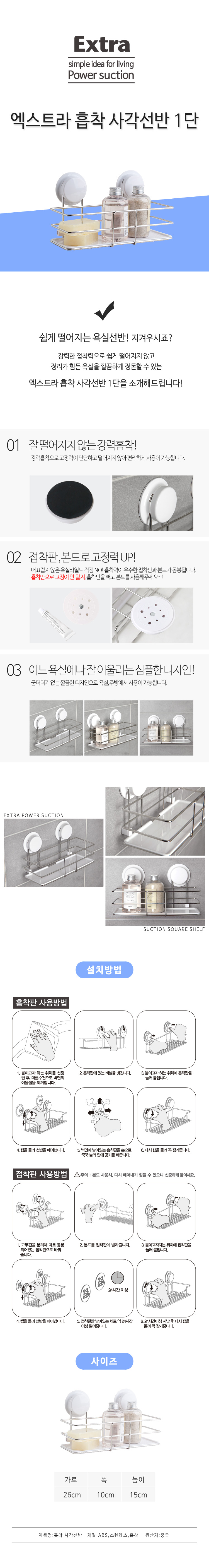 상품명 : 엑스트라 흡착 사각선반 1단