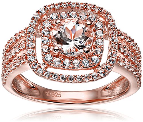 -. Title : Rose Gold-Plated Silver Morganite and Created White Sapphire Double Halo Engagement Ring, Size 7
