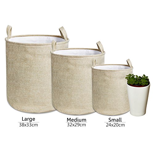 Three Sizes Available For Round Hampers Wimaha laundry hampers are available in three size options: 8x10", 11.5x12.5", and 13x15". Our laundry hamper is perfect for nurseries, laundry rooms, closets, bedrooms, dorms, and more. This trendy and functional laundry basket can be used in every room in your home. The linen cotton blending construction is durable and collapses down for compact storage while not in use.