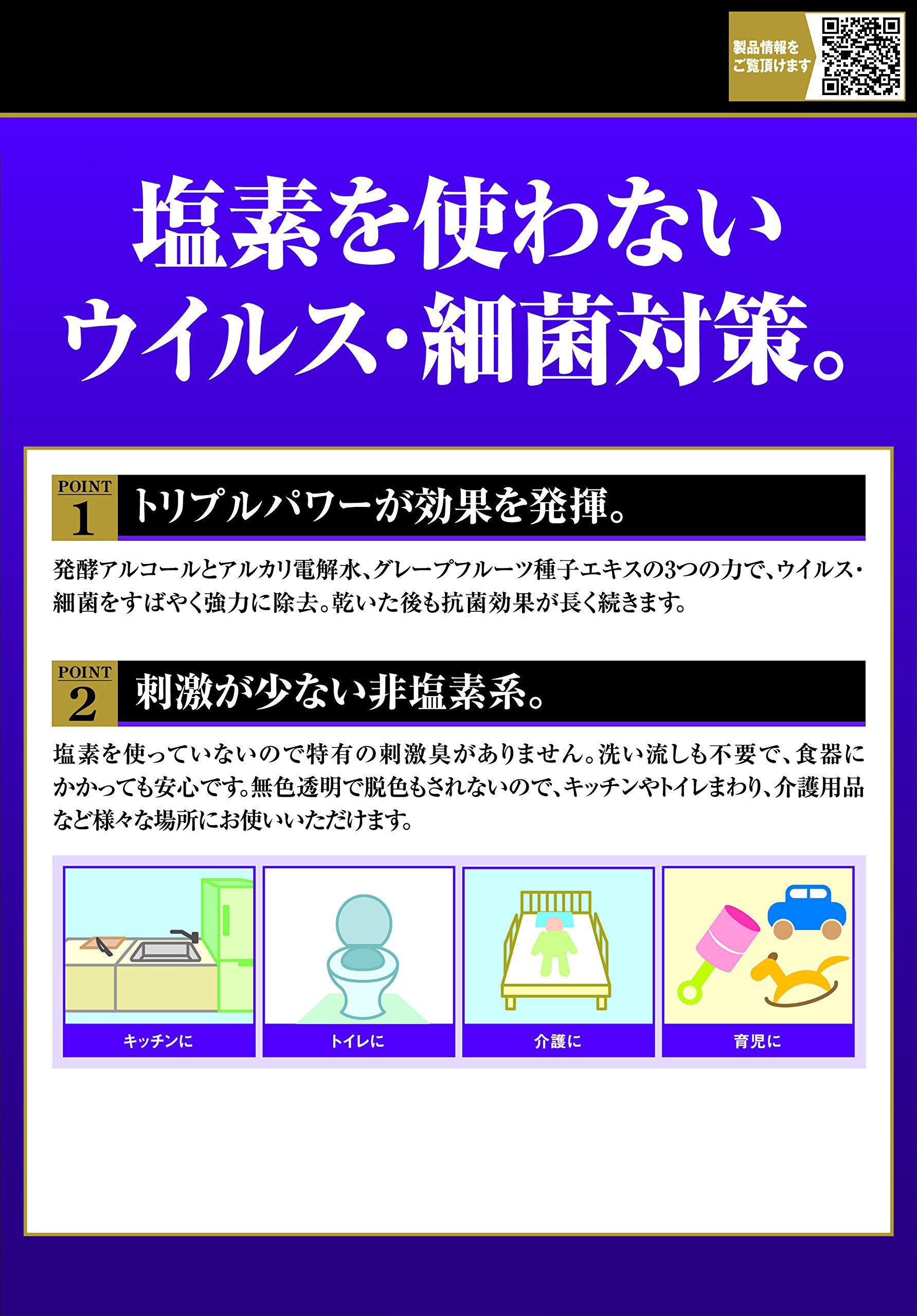 ● Vigorous bacteria are quickly and strongly removed by fermentation alcohol, alkaline ionized water and grapefruit seed extract with three forces.