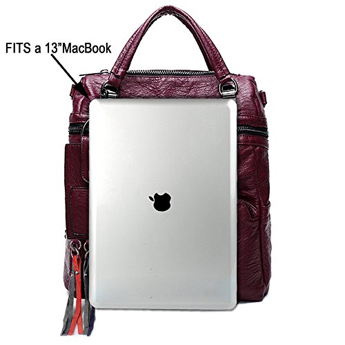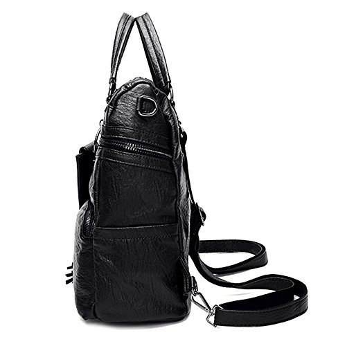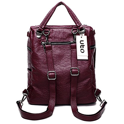UTO Damen Rucksack Purse PU gewaschen Leder Frau Rucksack Schultertasche mit Fashion Quast Geldborse