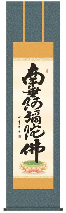 思わず生きる力が湧いてくる生命力あふれる筆勢の名号作品です。仏事はもちろん、常用掛としてもお使いいただけます。