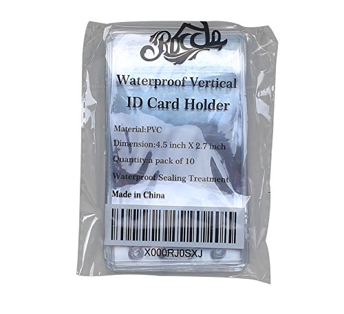 Rocclo Waterproof Type PVC ID Card Holder, Clear, Vertical Style, 10-pack