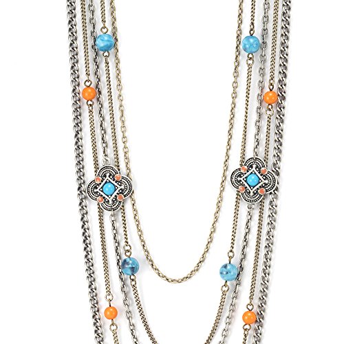 -. Title : Womens Jewelry Long Silver Necklace Multi Chain Turquoise Bead Necklace and Earring Set