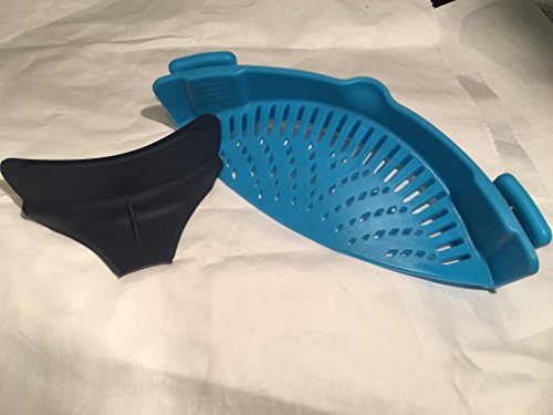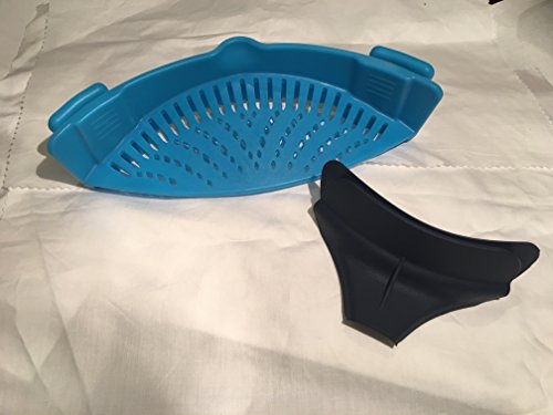 No-hands No-Fuss Clip-On Strainer. Dishwasher Safe Colander, Fit Most Pans. Suitable for Draining Pasta, Vegetables. Set includes Silicone Slip On Pour Soup Spout Funnel. Useful Kitchen Tool (BLUE)