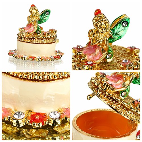-. Feature : Material:metal&crystal ; size: 1.9*1inch / Jewelry Trinket Box is Hand-Painted ,handmade / Trinket box hinged cover looks elegant,crystals are handpicked / Trinket ornament box has a magnetic fastener to secure the closure / The small jewelry storage box is very suitable for Decorate your dresser