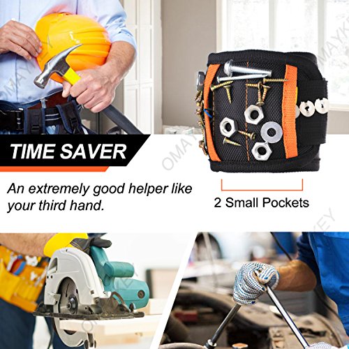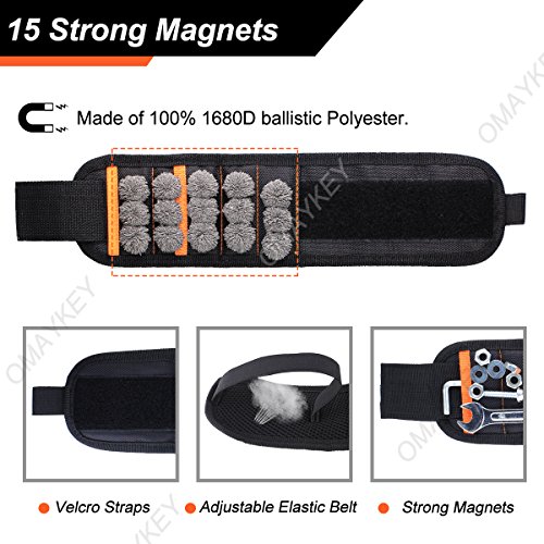 OMAYKEY 15 Powerful Magnets Magnetic Wristbands with 2 Small Pockets, Handsfree Wrist Band Strap Holder Pickup Carry Kit, Magnetic Holding Wristband Tool Holster for Screws, Bolts, Nails, Drill Bits
