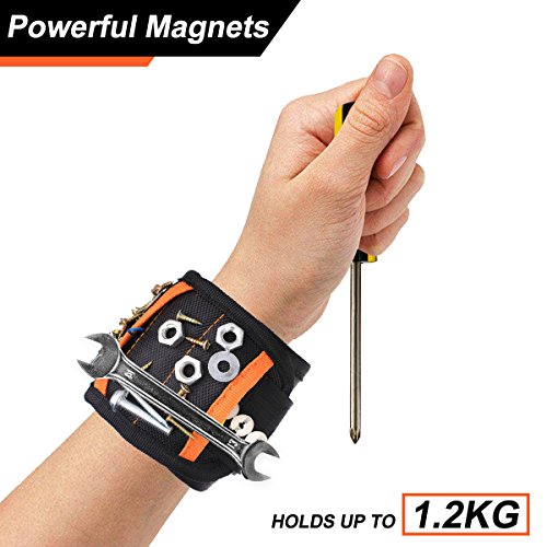 - ✔ The magnetic arm band wristband holds small metal objects, small tools, screws, nails, bits, bobby pins, bolts, washers, pins, fasteners and much more.