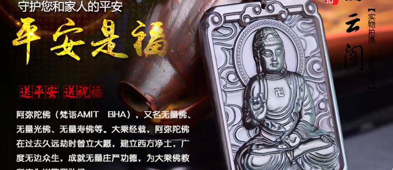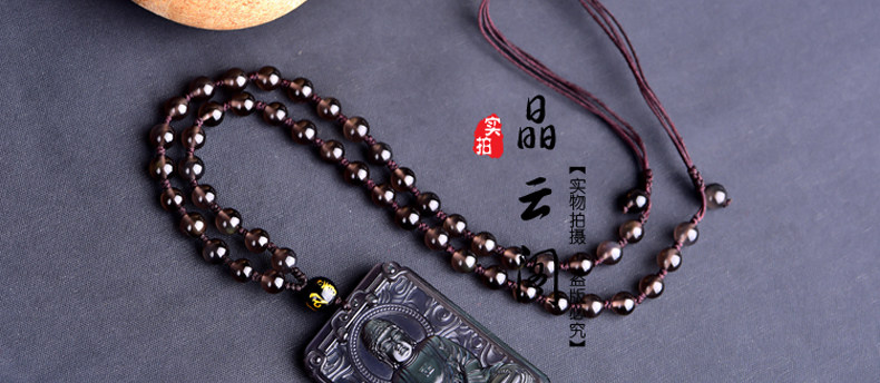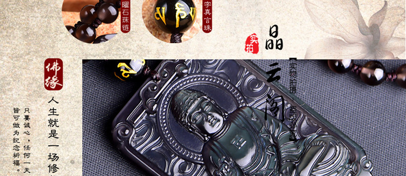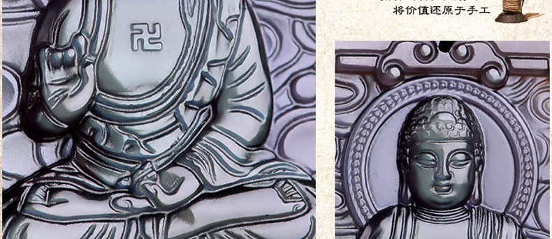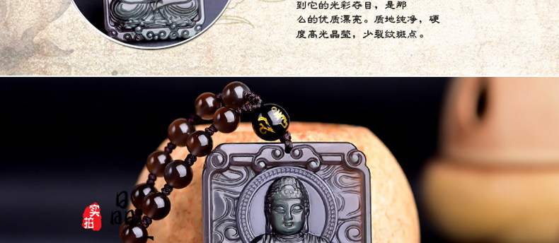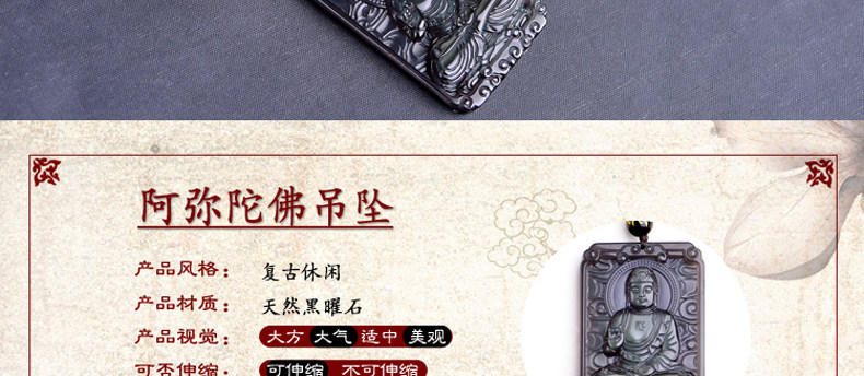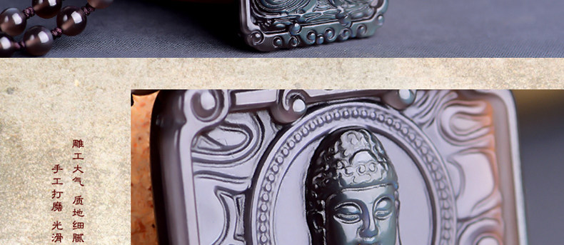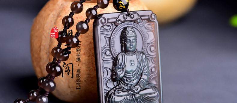 开光天然冰彩黑曜石阿弥陀佛菩萨 生肖狗猪守本命佛守护神吊坠