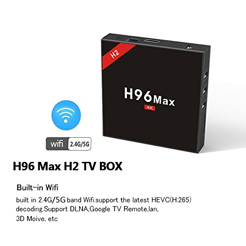 -. Feature : H96 MAX H2 TV Box with Android 7.1 OS, powered by latest RK3328 Quad Core CPU and Penta-Core Mali-450 Up to 750Mhz+ GPU. / Built in 4GB RAM DDR3 and 32GB ROM EMMC Flash Memory, excellent performance with your favorite applications and games. / Great enjoyment to watch TV shows, 3D movies, play games, browse the pages of web side etc. / Support 4k2k H.265 Video Decode and 4k2k Output, more new visual experience to HD screen. / Featured with WiFi 2.4G/5G, easily to carry and connect it to your TV through Network or Wireless,so you can enjoy watching videos, playing games, surfing the internet YouTube, Netflix, Skype etc, to meet different customer needs.