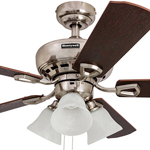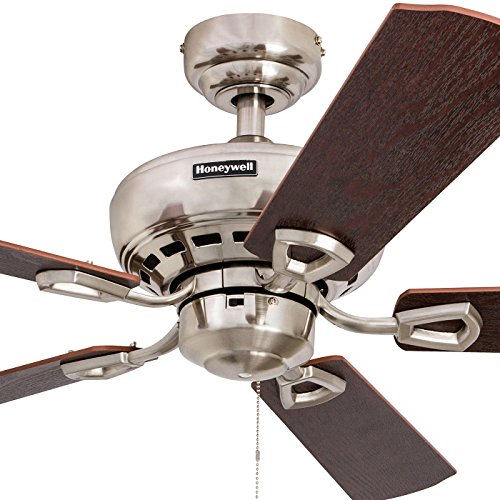 Keep your space cool with a Classic Honeywell Ceiling Fan. This fan has a warm design that will complement most any space. Hang it in a living area or family room to keep things cool in the summer months and even reverse the motor to keep it warm in the winter! The 52 inch ceiling fan is energy-efficient and easy to install, so you can start enjoying the comfort in no time. It comes with 3 different options for mounting, too. This timeless fan will keep you cool for years to come.Feature