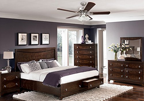 QUALITY DESIGN: Features a brushed nickel finish with a beautifully frosted, swirled white shades with 3 lights (3 x 60 watt bulbs included). Designed with 2 separate blade finishes, warm cherry on one side and chocolate maple on the other