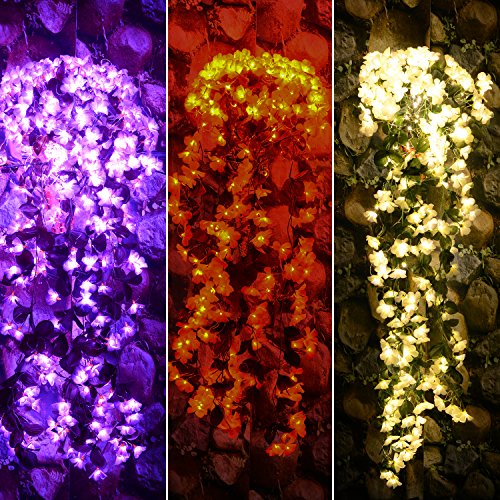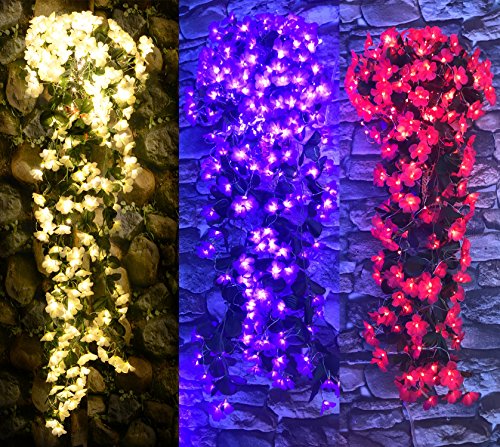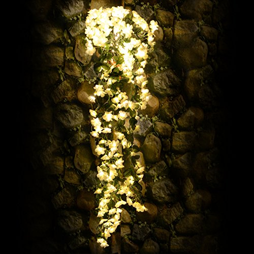 Artificial Flowers String Light 260LED Decorative Lights Violet Hanging Garland Vine Silk Flowers Hotel Christmas Wedding Party Garden Decoration (White)