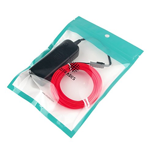 Zitrades EL Wire Red Portable Neon Glowing Electroluminescent Wire 15ft With Transformer For Thanksgiving Day Christmas Day Birthday Party