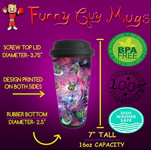 Funny Guy Mugs Space Cats Travel Tumbler, 16-Ounce