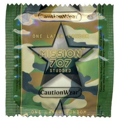 Studio : Caution Wear Publisher : Caution Wear Binding : Health and Beauty Product Description Caution Wear Mission 707 Studded Condoms feature a shaft with a dramatic three plus inches of raised dot texture. A quality studded condom at an inexpensive price. All Caution Wear condoms feature ultra smooth silicone lubricant, reservoir tip, and nearly transparent latex. Each is electronically tested for reliability. Available in Condom Country packs of 12, 24 and 48, and bags of 100. 0