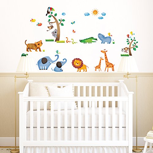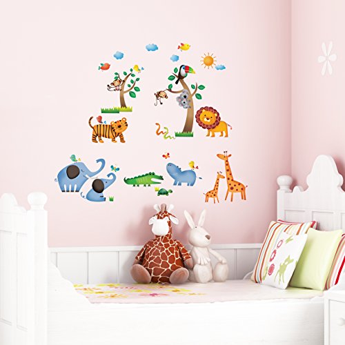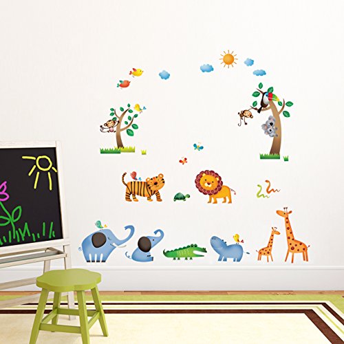 Decowall DW-1206 Wild Jungle Animals Kids Wall Decals Wall Stickers Peel and Stick Removable Wall Stickers for Kids Nursery Bedroom Living Room