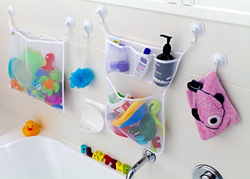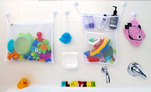-. Title : Bath Toys Organizer x 2 by PlayTime! | XL Super strong, Mold Proof, 5 Pocket Mesh Holder for Baby/Toddlers + FREE Games E-Book. Toy Storage has never been easier! Includes 6 Powerful Suction-Cup Hooks