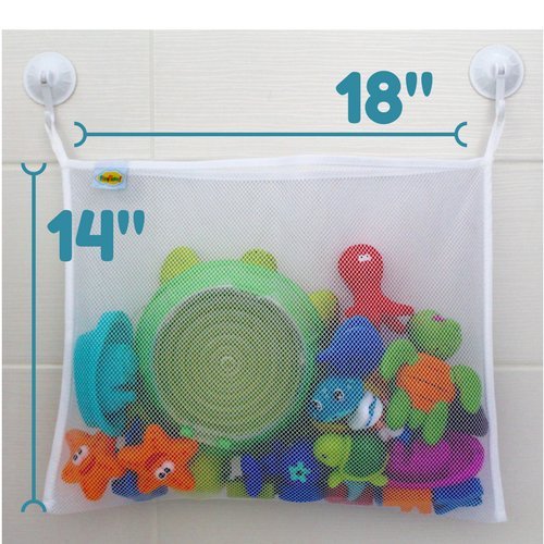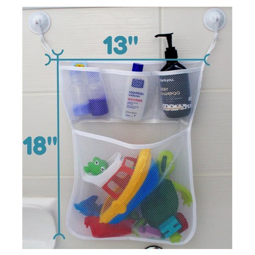 -. Feature : * IMAGINE HAVING A TIDY BATHROOM - EVERYDAY. Toy storage has never been easier with 2-large net toy organizers. You get one large toy holder for bigger toys, PLUS one with 3 handy compartments for shampoos and sponges. / * KEEP MOLD AWAY AND YOUR KIDS HEALTHY AND HAPPY. Our high quality, heavy duty mesh provides excellent ventilation to allow water to drain easily, keeping your kid's toys dry and hygienic. Toys that have dried properly do not allow mold or scum to form - making your bathroom healthier! / * BUY NOW FOR GREAT VALUE with EXTRA POCKETS AND EXTRA HOOKS, FOR A NEAT AND TIDY BATHROOM. 3 extra compartments and 2 extra hooks are just what you need to complete your bathtub organization. Use them for soap, shampoo, sponges or to hang wash cloths. / * SUPER STRONG LEVER SUCTION-CUP BAG HOOKS. Our ultra-strong suction cup hooks are made to stay firmly on your bathroom wall. Attach them to a clean, flat, non-porous surface and they won't slip. Just pull the lever down on the hook and hang up the bag - it's so easy and convenient! / * HAVE FUN DEVELOPING FINE MOTOR SKILLS AND INCREASING COGNITIVE FUNCTION. We have tried and tested these easy-to-play educational bath-time activities and can guarantee they will make bath-time a fun-time for everyone. These games are designed to improve fine motor skills and to help develop the thinking minds of toddlers and babies.