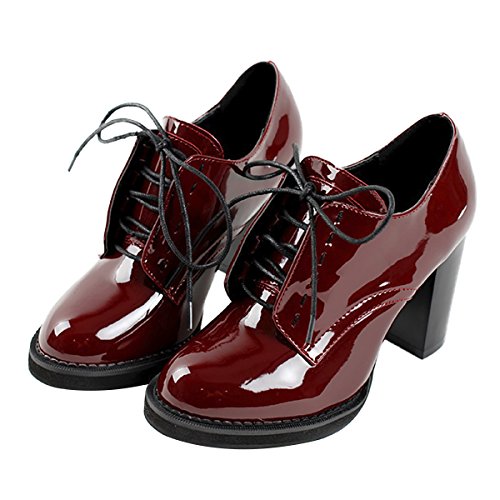 -. Title : Inornever Wingtip Oxford Womens Lace Up Chunky High Heel Vintage Patent Leather Dress Pumps Shoes