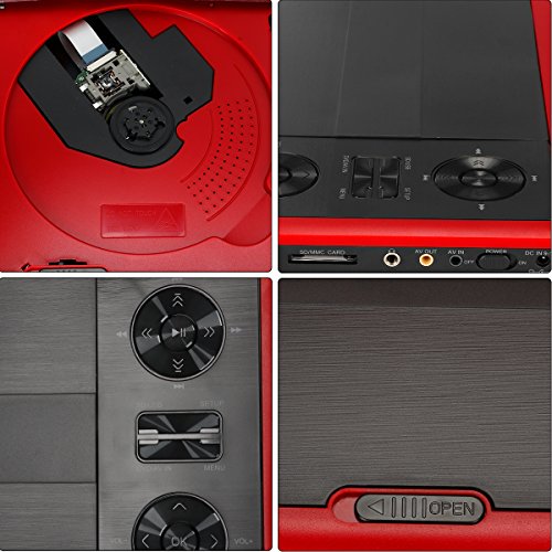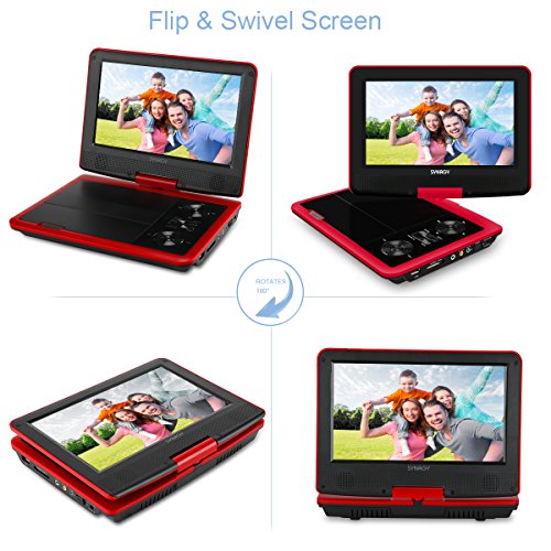 SYNAGY 9inch Portable DVD Player Portable CD Player with Screen & SD Card Slot for Kids Adults Seniors & Cars (Red)